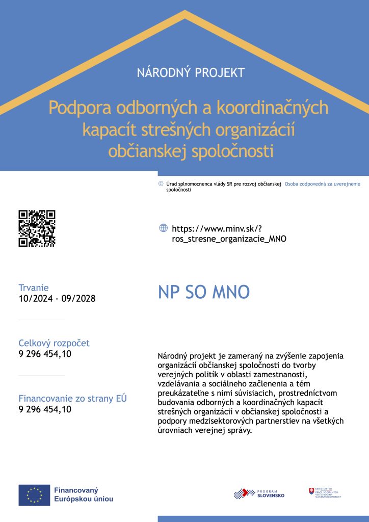 Základné informácie o národnom projekte: “Podpora odborných a koordinačných kapacít strešných organizácií občianskej spoločnosti”